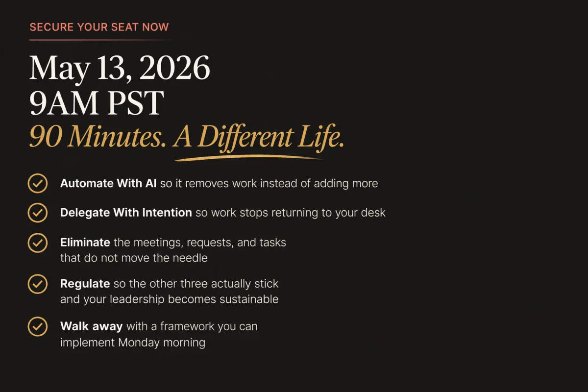 The leaders who have both the success and the life they built it for did not get there by working harder. They got there by leading with a framework that actually returns what leadership is supposed to give you. That framework is what Dr. Shelley is bringing on May 13th.